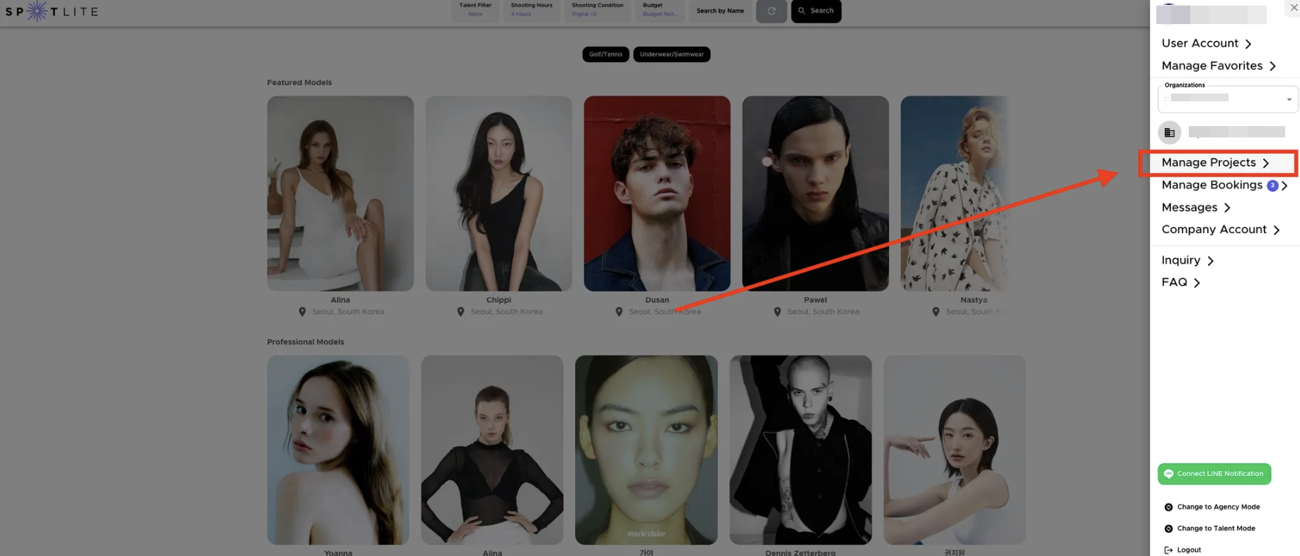 1. Click MENU in the top right corner and go to 'Manage Project.'