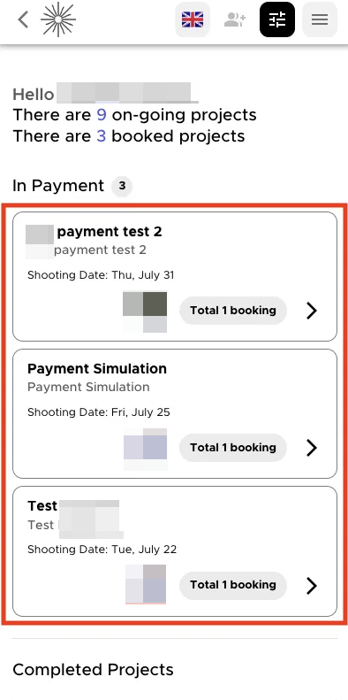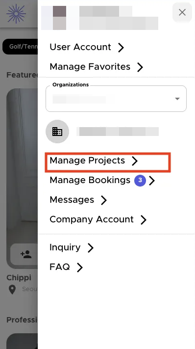 1. Click on the MENU in the top right corner and go to 'Project Management'.